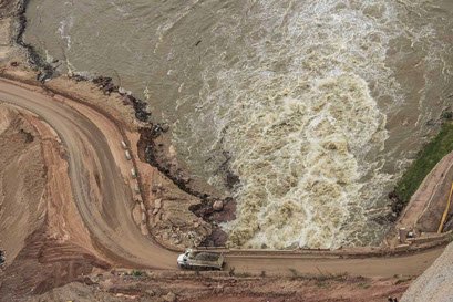 Continuó la ejecución de los rellenos de la presa, a la fecha se han colocado 3,28 millones de metros cúbicos de material de un total de 8,6 millones de m3 de material compactado previstos, lo que representa un avance de 36%. La presa es la estructura de contención principal para el embalsar el agua.
